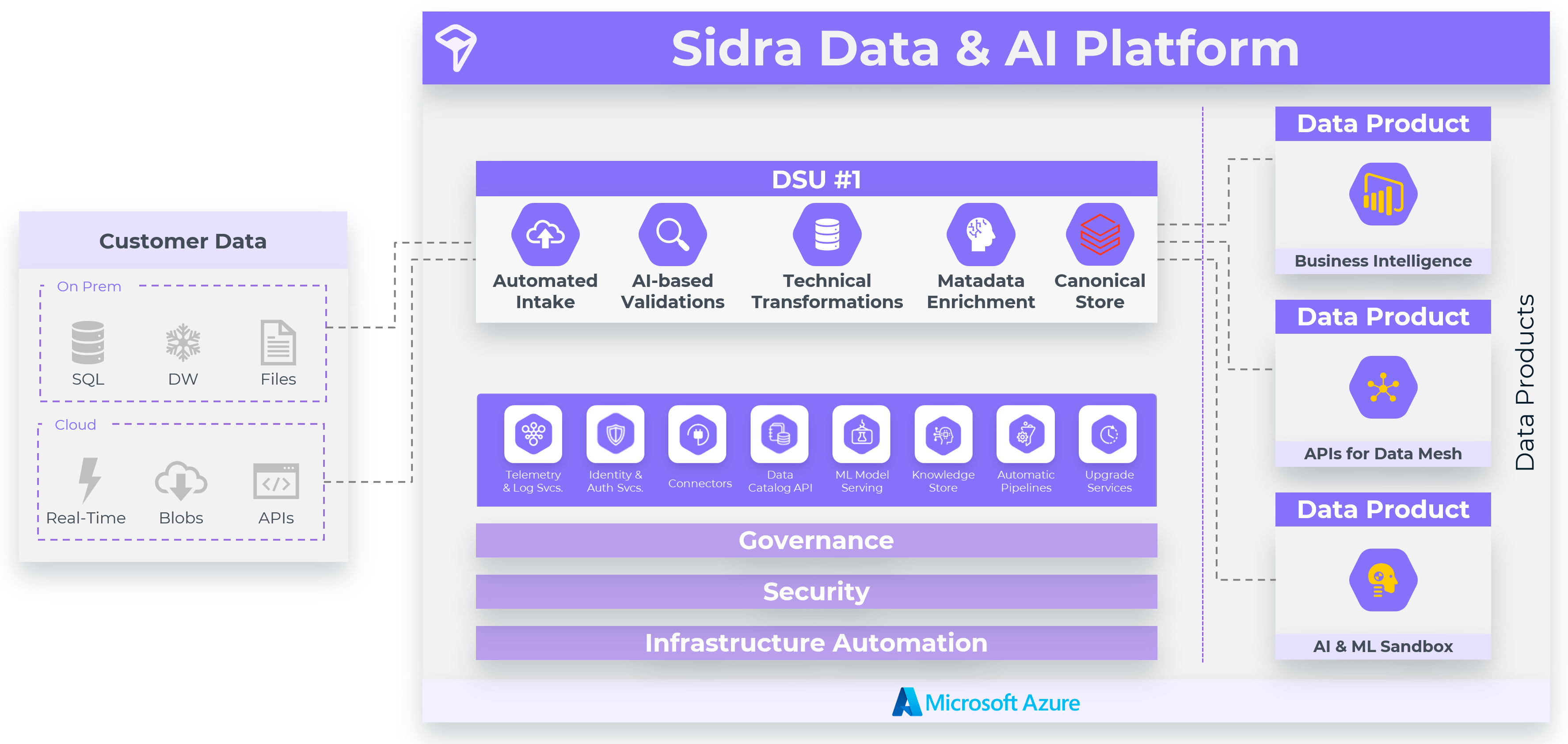Rather than attempt to centralize and predefine business meaning (e.g., reconciling "Revenue" between Finance and Operations), Sidra defers this to the owners of Data Products. By ingesting data into the DSU in raw-but-standardized form—quickly, painlessly, and without political friction—Sidra avoids the failure patterns of large, centralized data warehouse projects.