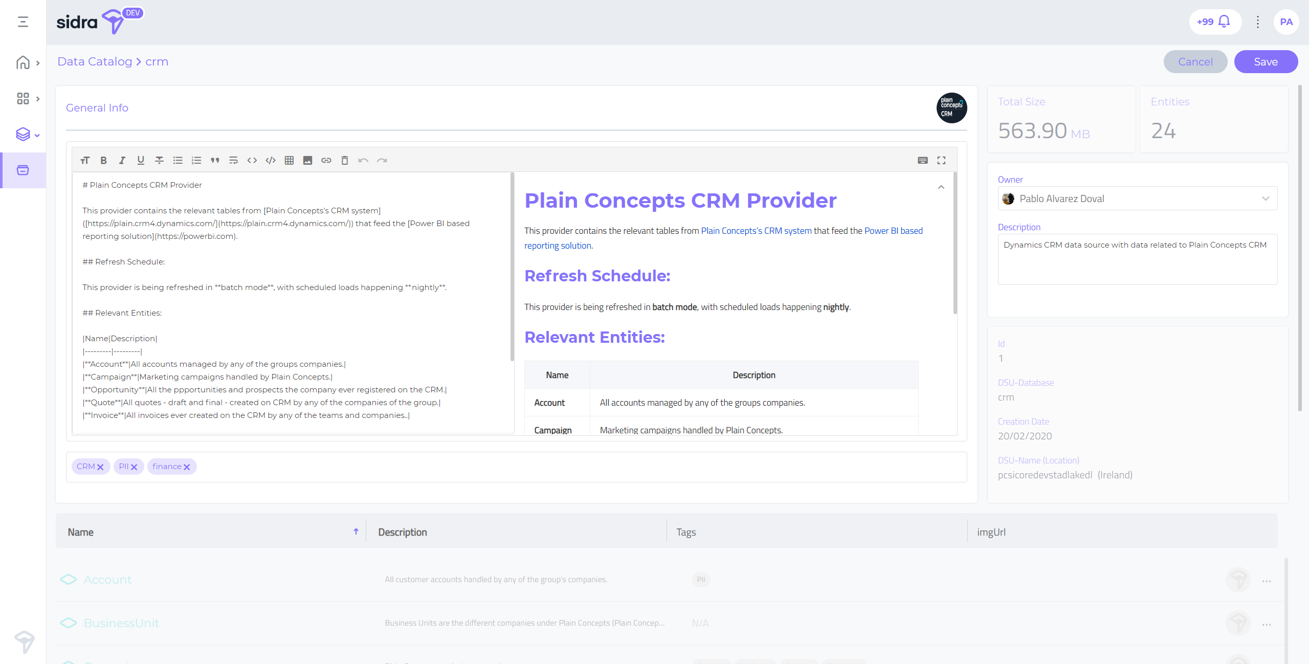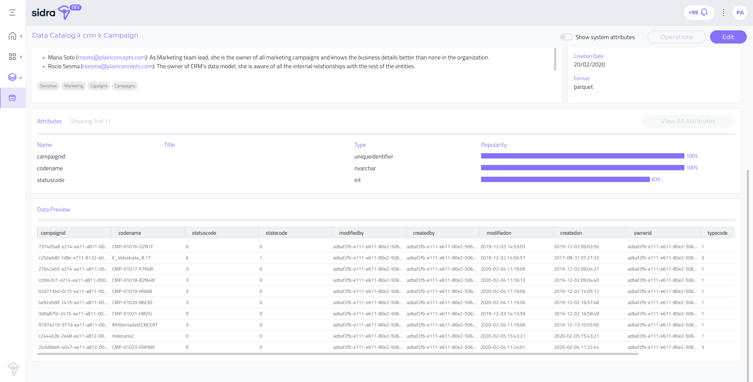 Quite often, good things come from of challenging times... and these are indeed challenging times. Our team has worked extremely hard with our current customers and partners to build, without a doubt, the biggest release in the history of Sidra. The Foolish Flamenco release completes the huge security overhaul started with the October 2019 release with the implementation of the new security model on the Extract API, as well as the adoption of Balea, an open-source authorization framework for ASP.NET Core. We are adding a massive number of key improvements and capabilities to the Data Catalog web UI, including metadata editing for Providers and Entities, Data Preview with data masking support, as well as many other small updates.