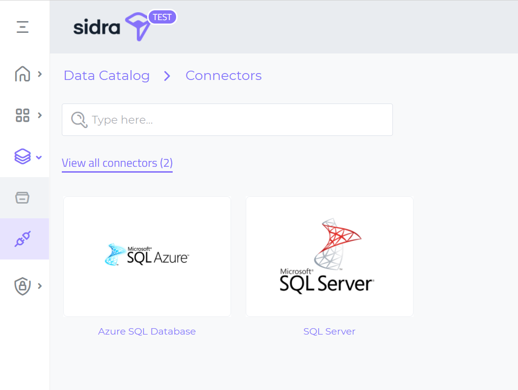 Sidra web users with Admin privileges can see the gallery with available connectors under the Data menu in Sidra Web: