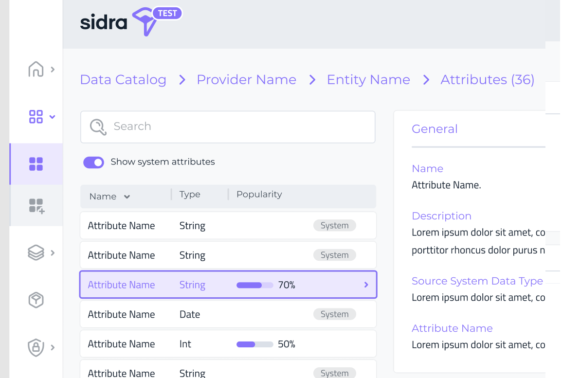 Sidra Data Catalog now includes the ability to see the popularity for all Attributes in the Attribute list and details page. Before this feature, just the top three Attributes popularity was displayed as a sample, in the Entity details page.