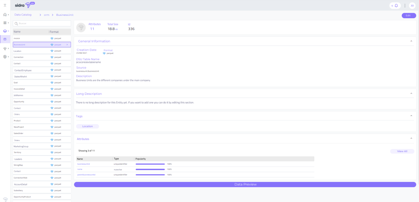 With this release it is now possible to add tags to the Attributes in the Data Catalog. This completes the data management possibility to codify / categorize the Assets in Sidra Data Catalog at all three levels of data ingestion Assets: Provider, Entities and Attributes.