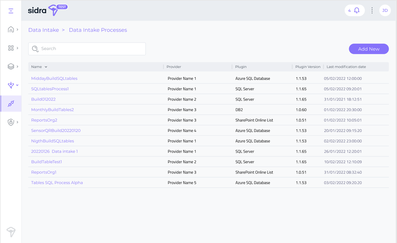 As part of the next release, we are planning to increase the plugin catalogue to create and edit Data Intake Processes from Sidra Web, with the release of new plugins for connector and Data Products. New features for schema evolution and for improving binary file ingestion will also be incorporated.
