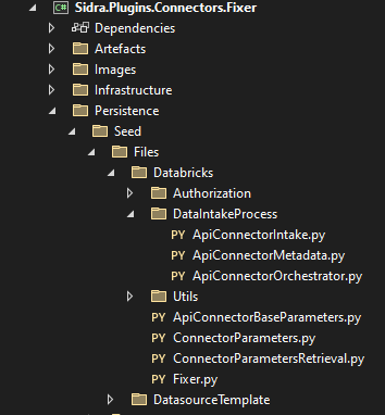 Open the generated .sln file using your preferred IDE. Then, navigate to the Persistence/Seed/Files/Databricks folder in the Sidra.Plugins.Connectors.Fixer project.