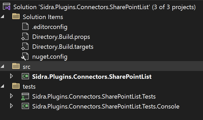Sidra.Plugins.Connectors.SharePointList.Testscontains unit testsSidra.Plugins.Connectors.SharePointList.Tests.Consoleis a command line application intended to execute the connector locally