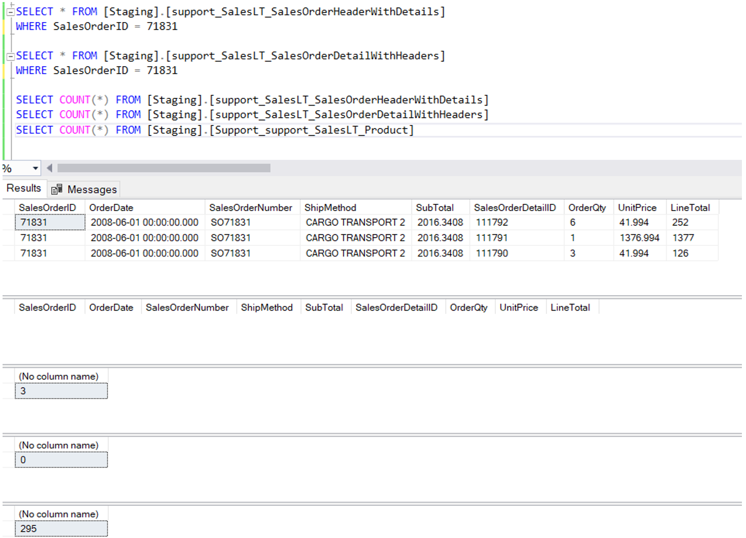 SalesOrderHeaderWithDetailsstaging table, corresponding to the change in the Header table affecting three records. - There are no records in the