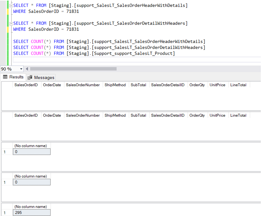 SalesOrderHeaderWithDetails, we have a total number of 0 records. This is because:- On day 1, the Sync did not run, so it did not bring the incremental load on Header table.