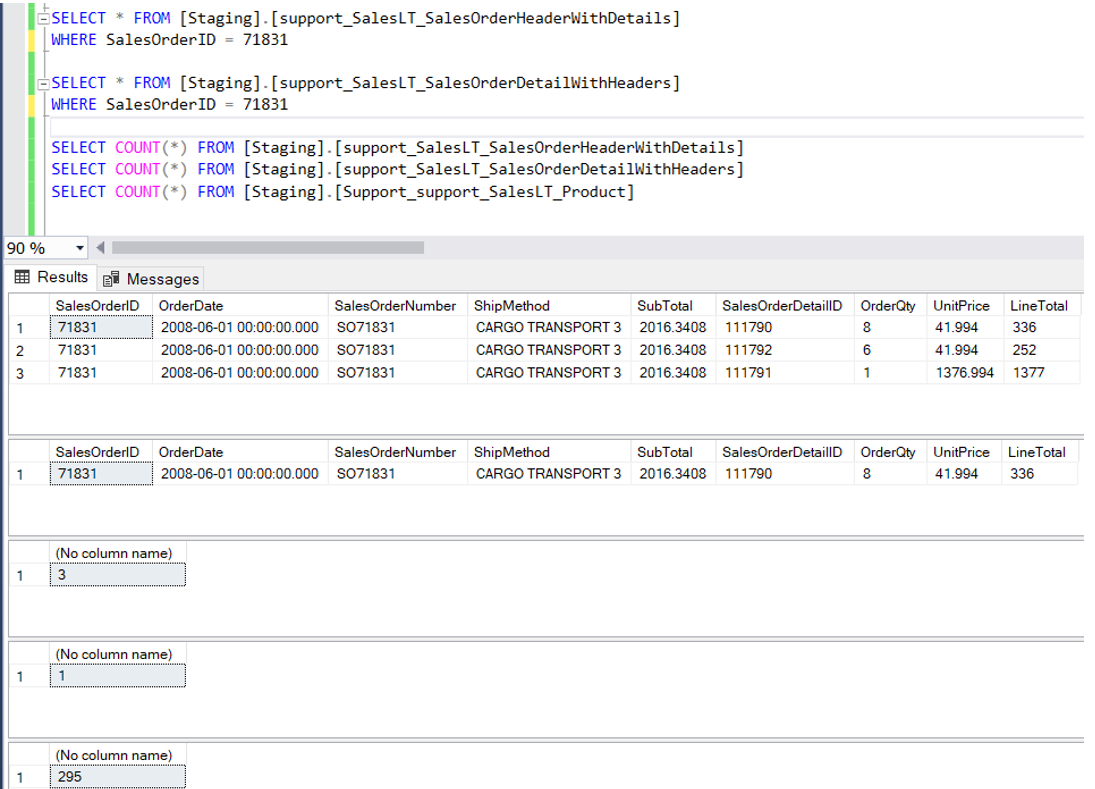 SalesOrderHeaderWithDetails, we have a total number of 3 records. This is because:- On day 1, the Sync did not run, so it did not bring the incremental load on Header table.