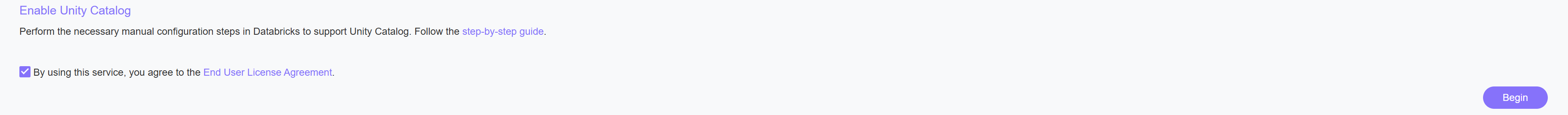 To proceed, review and accept the End User License Agreement, then click Begin: