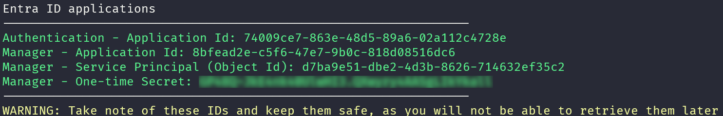 Manager Secret | Client secret for the Supervisor's Manager app registration, used to authenticate against Azure. | GP49Q~JkE4nk40UlwHI3.QXwyry4AASgLIkYkbll | Yes |