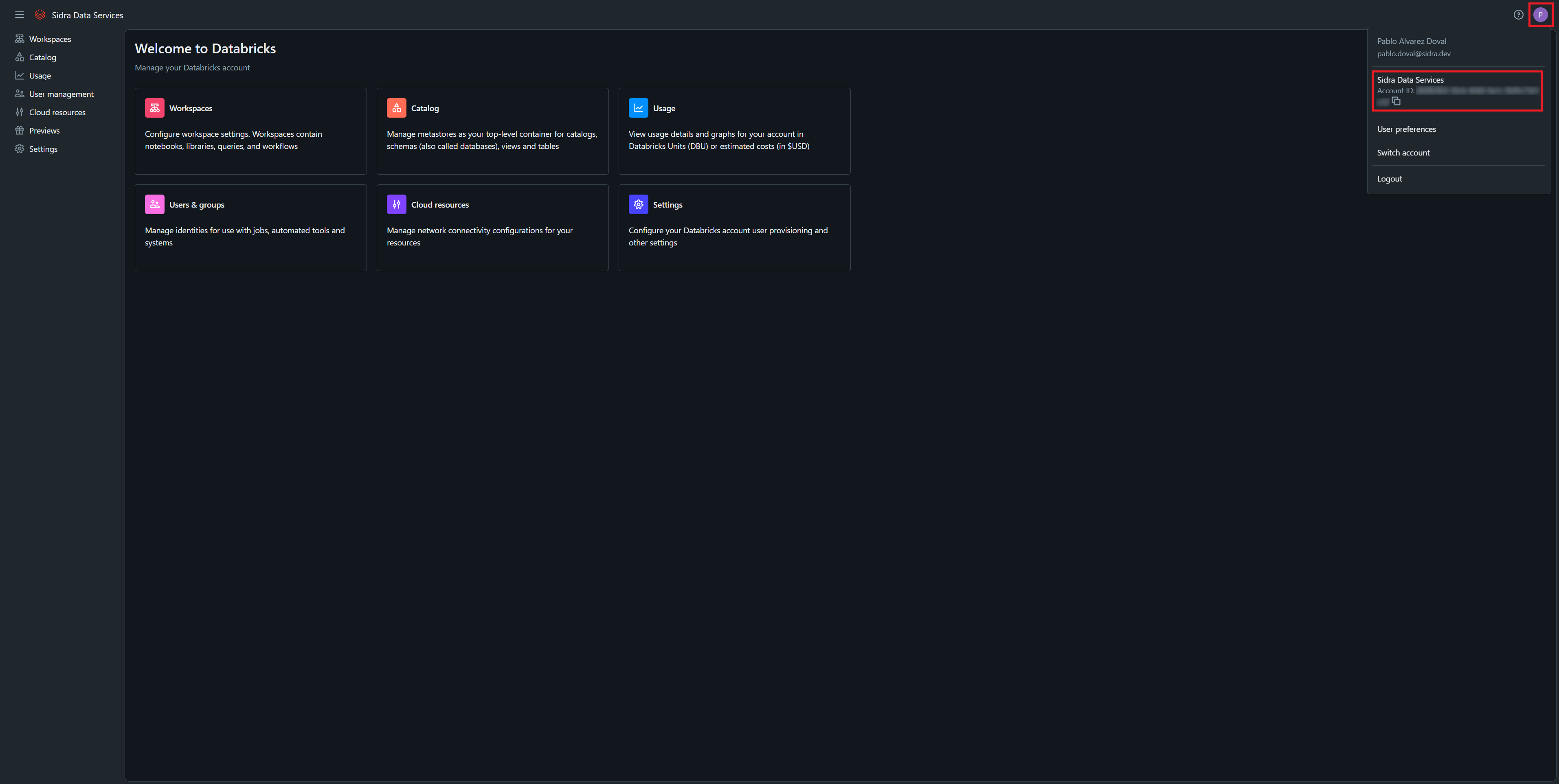 Access the Databricks Account Console: